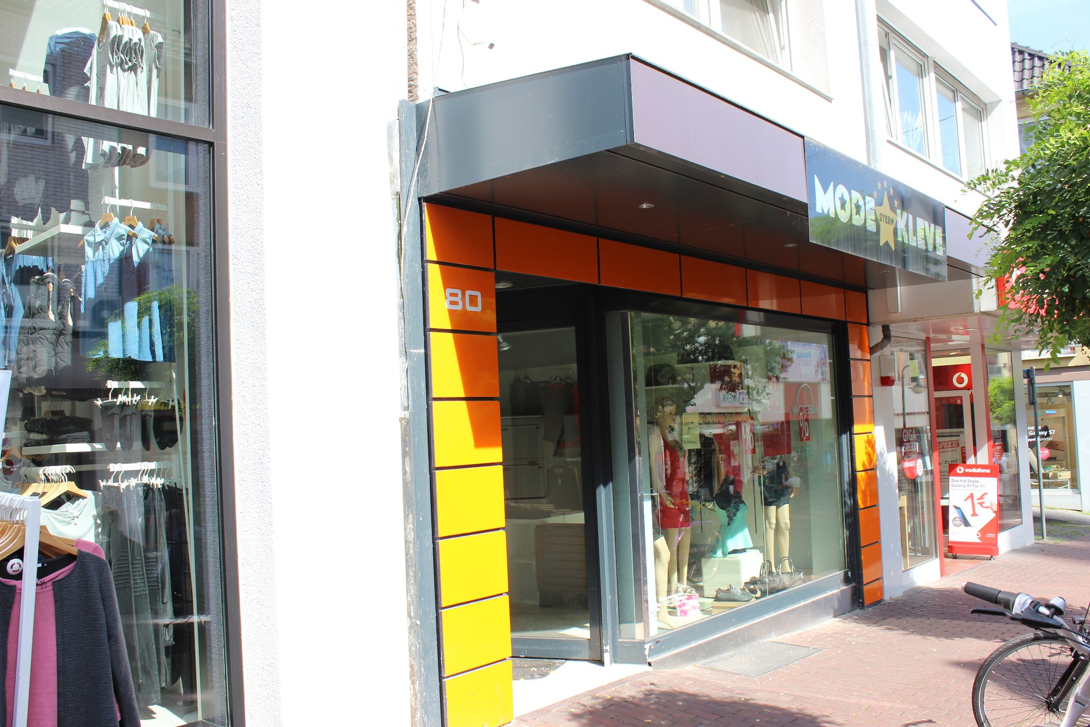 Kleve-Fußgängerzone: Ladenlokal mit großer Schaufensterfront